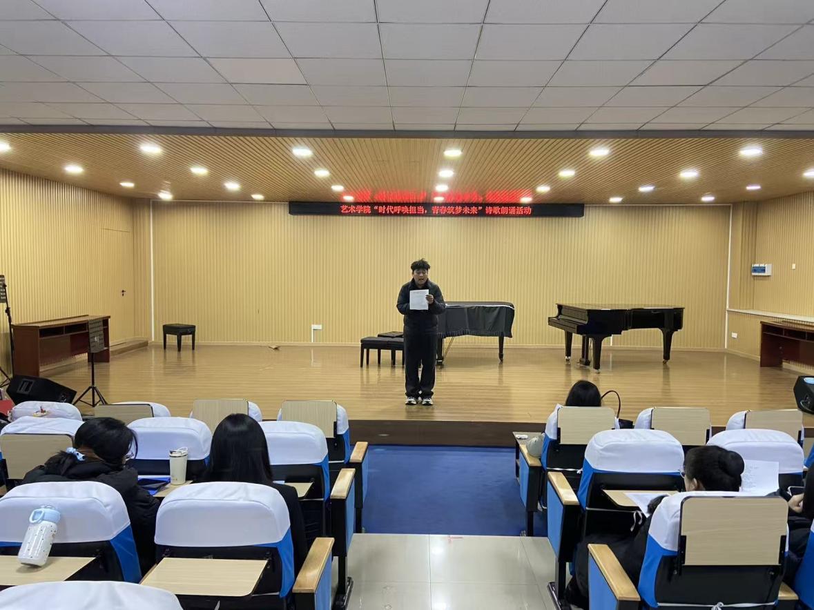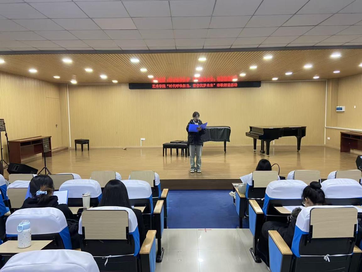 为厚植青年家国情怀,凝聚青春奋进力量,12月19日,艺术学院在众诚报告厅举办了“时代呼唤担当,青春筑梦未来”主题诗歌朗诵活动。