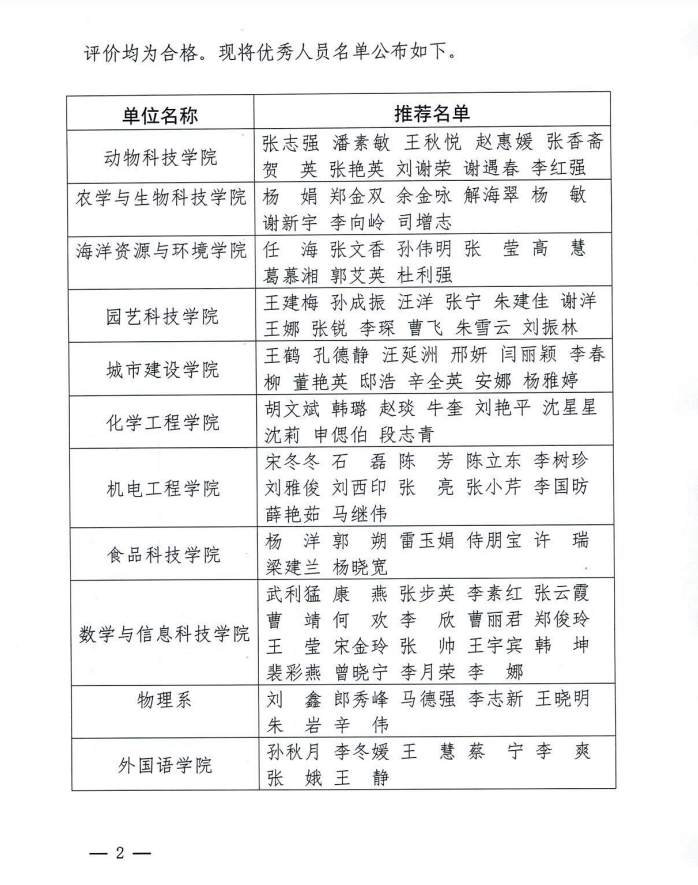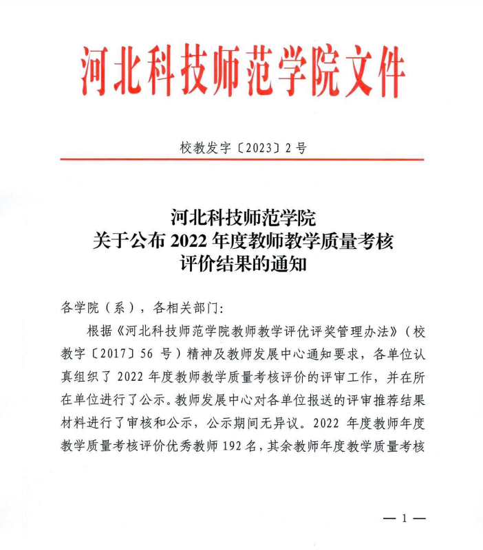河北科技师范学院关于公布2022年度教师教学质量考核评价结果的通知