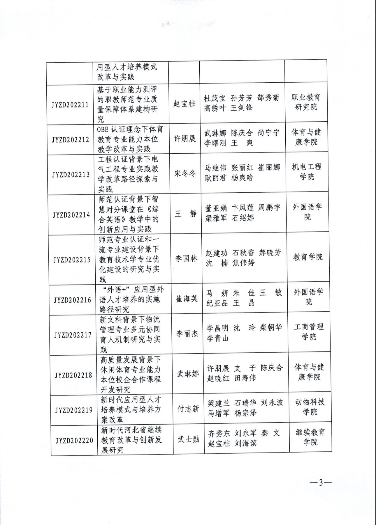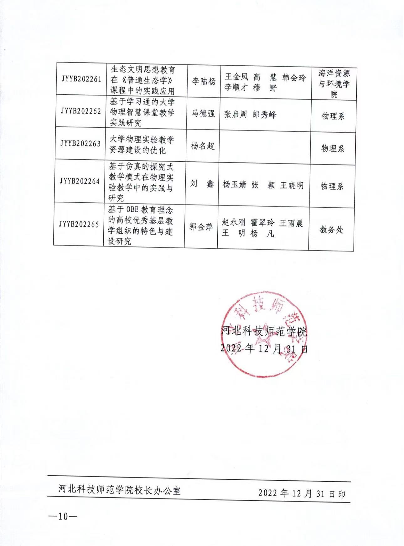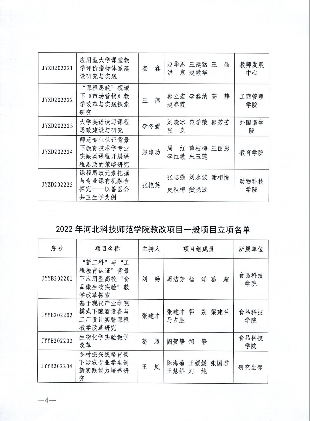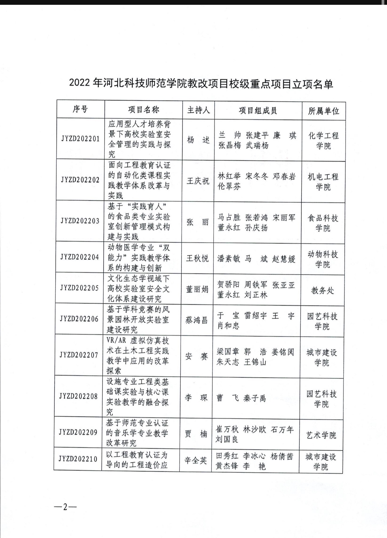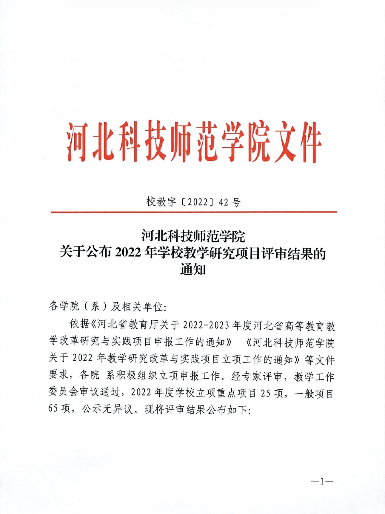 河北科技师范学院 《关于公布2022年学校教学研究项目评审结果的通知》