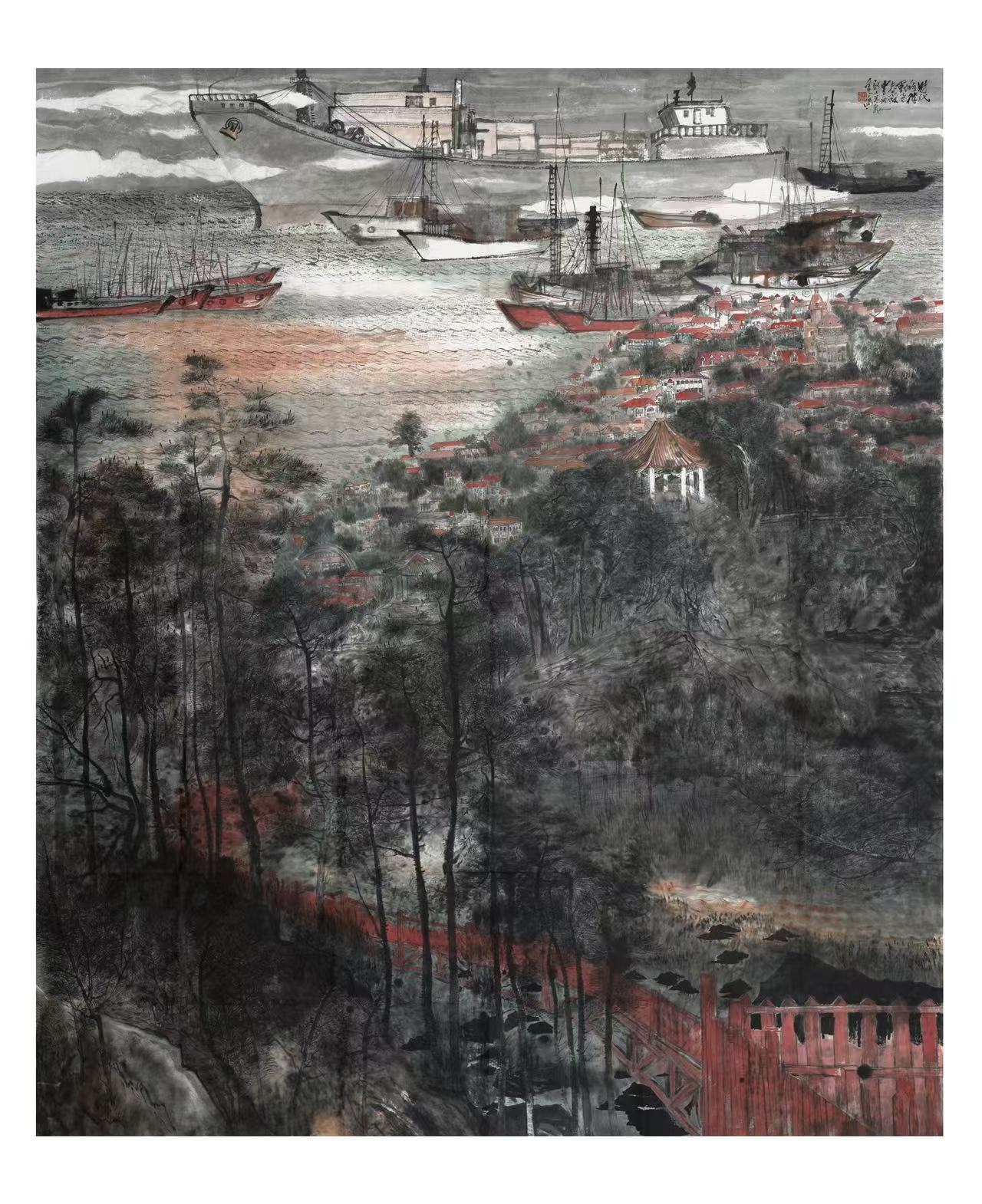 作品《时代的律动》展现了鲜明的艺术风格与深厚的文化底蕴,尽显当代国画创作的传承与创新之力。作品形式内容充满乡土风情,展现山水意境与时代新貌,在笔墨语言上巧妙融合传统写意技法与现代审美意趣。画面中,皴擦点染间尽显山川雄浑之态,淡墨晕染的留白处暗含东方美学的空灵之境,线条刚柔并济,色彩雅淡相宜,整幅画生气蓬勃,透露出时代前进的步履与人民生活幸福的气息。
