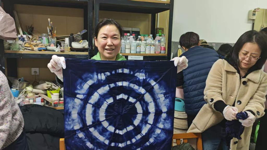 本次活动特邀学院扎染/蜡染非遗传承实践者贾辉老师亲临现场授课指导,带领全体女教职工沉浸式制作扎染抱枕,近距离感受传统扎染技艺的独特魅力。贾辉老师深耕非遗传承与教学领域多年,长期带领学生开展扎染创作与非遗推广工作,曾带队参与央视《大美秦皇岛》节目拍摄,全力助力地方文旅发展与非遗文化传播,有着丰富的教学实践与非遗推广经验。