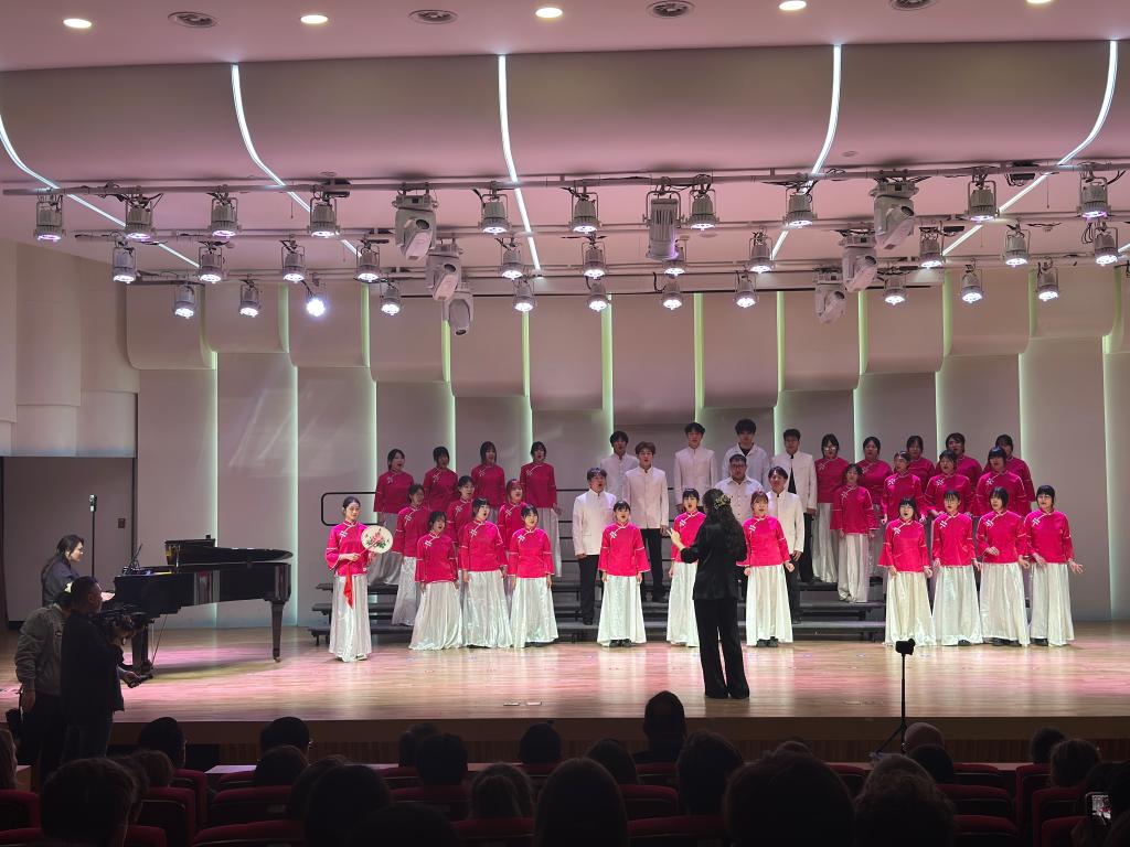 麦兜兜合唱团以饱满深情的演绎唱响冀东民歌《小看戏》,巧妙融入河北非遗太平鼓的铿锵韵律,歌声与鼓点相映成趣,既展现了扎实过硬的专业水准,也彰显了青年学子传承文化的责任与担当。整场活动以音乐为纽带,架起中美青少年文化交流的桥梁,既是对中华优秀传统文化的鲜活传承,也让同学们在实践舞台上锤炼技艺、拓宽视野,在跨文化交流中进一步坚定文化自信。